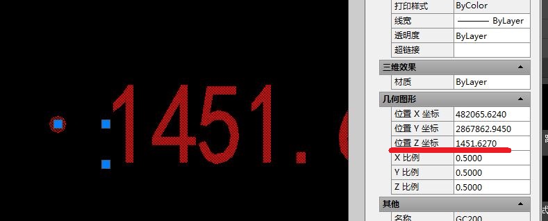 当我们进行一些高程计算的时候!由于粘贴和旋转等原因!上图中画红线Z值会变化!我们在计算的时候 一定要检查 对象特性里面的Z值 是否和图上一致!!否则什么三角网生成登高线! 什么土方计算!!都是错误的!!因为计算机就是提取这个Z值进行计算的!!