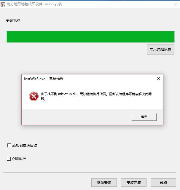 WIN10 64位系统cass9.2forCAD2015安装时及启动后出现错误,二次启动就正常了