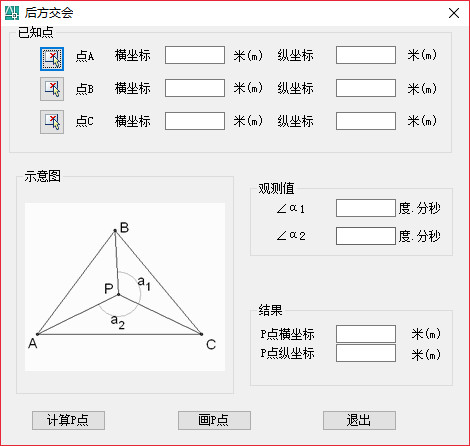 后方交会有很多图形,但不能代定点不能在三点形成的圆周上