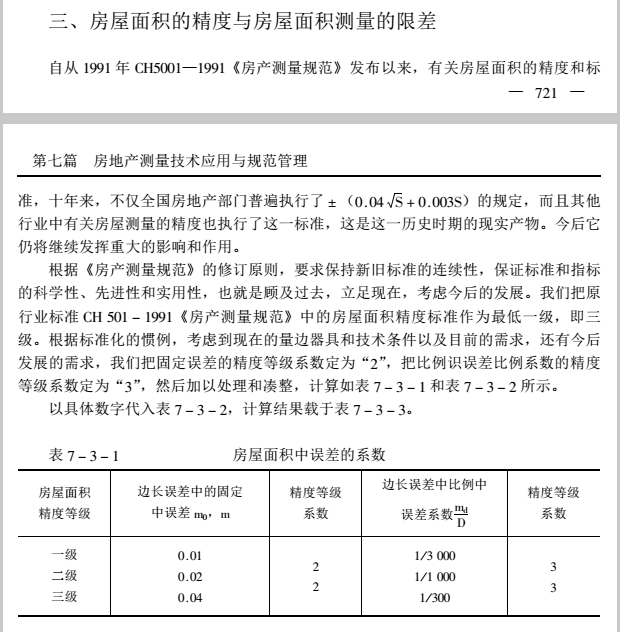 房产测量规范里有章节具体描述“房屋面积计算中的精度要求”,具体如下: