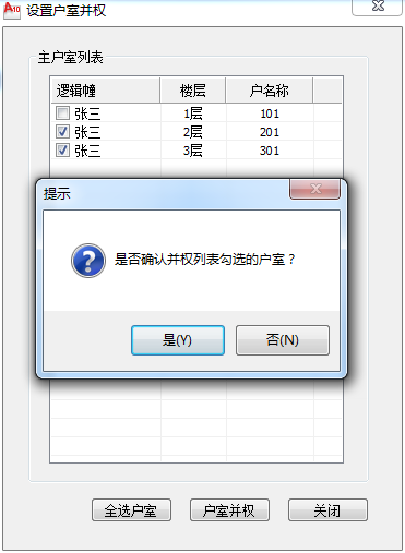 注:一幢为一个不动产单元时,点击“全选户室”->“户室并权”即可。