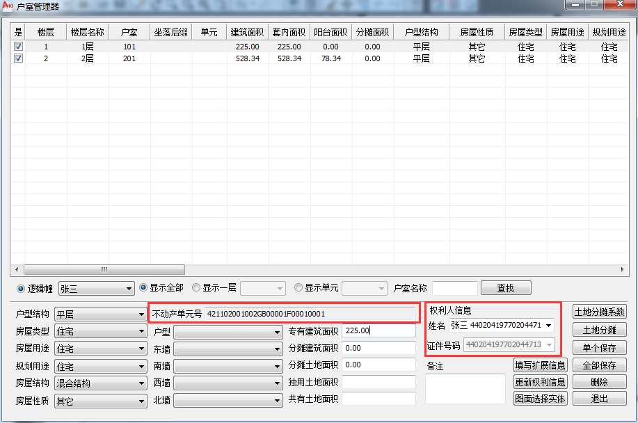 4. 生成不动产单元号后,可在户室管理器中查看,并填写房屋相关信息,权利人等。