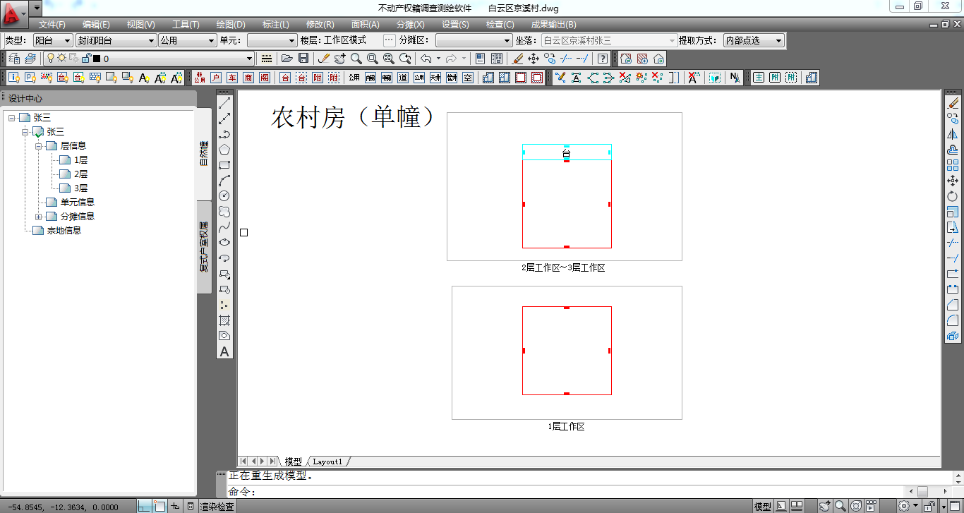 5. 执行命令:成果输出->生成dwg分户图(农村房);