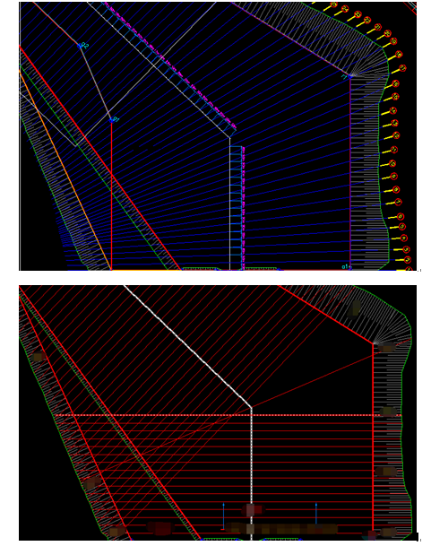 生成图1中的横断面线是用来做什么呢,如果是用断面法来统计土石方工程量,这样不正交的横断面是不适合套用平均断面和台体体积公式的。