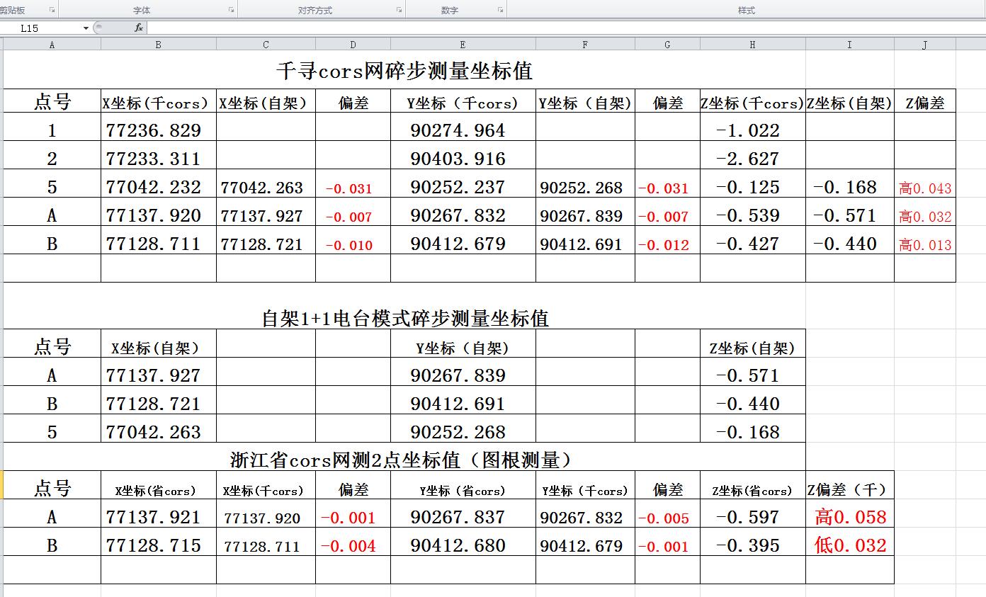 结论:经过3次以不同方式所测得的坐标对比发现,千寻cors网络稳定度好于省cors网络,优势是几乎不掉线,公用卫星数量比省cors网络还多,最少都在15颗以上,这也是稳定可靠的原因之一。