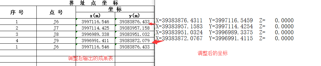对宗地中的两个界址点微调了0.002的距离,但输出的界址点成果表中坐标仍然未变。下图所示,为什么?怎么才能保持一致。