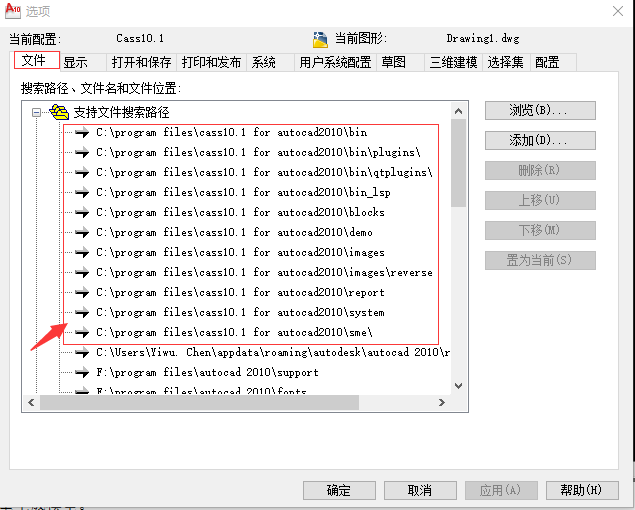 3.添加cass10.1文件支持路径,参考下图,添加cass10.1安装路径下的文件。