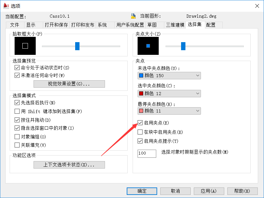 选择对象时,显示夹点数,可以自行定义限制的数量。当超过限制数的选择集,则不显示夹点