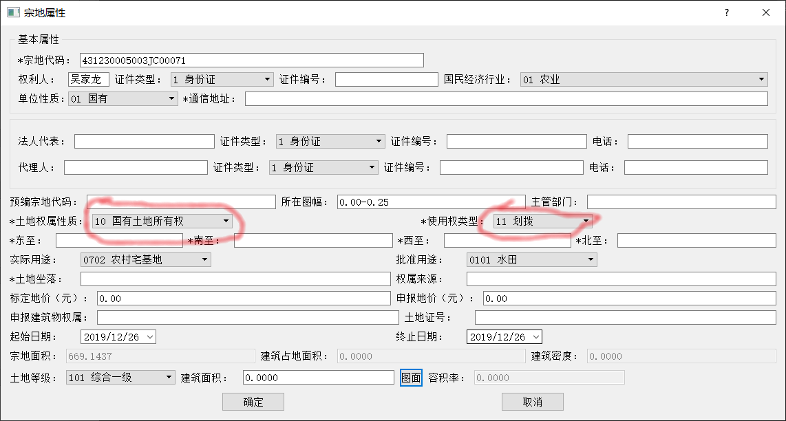 修改宗地属性中:土地权属性质和使用权类型自动默认为国有土地使用权和划拨,修改后点进去看这两项又变回默认了
