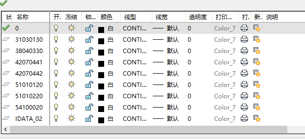 输出的dxf文件,在AutoCAD中打开,图层均以编码命名。
