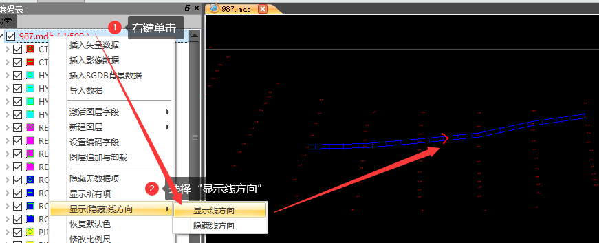 按下图步骤,即可在线符号中显示红色的方向箭头。