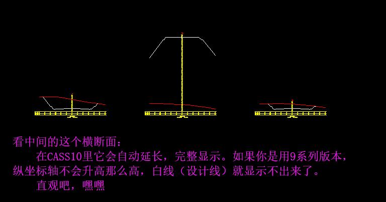 你用的应该是9.2及其以下版本吧,如果是CASS10,最终横断面图,纵轴会自动匹配延伸,都会完整显示出来。