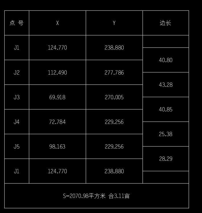 绘制的宗地坐标表