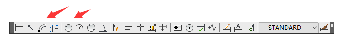请将AuotCAD的标注工具条调出,用下图所示的两个按钮可以标注。