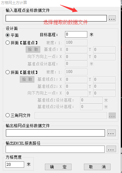 点击菜单:工程应用-方格网土方计算。选择上述步骤提取的数据。