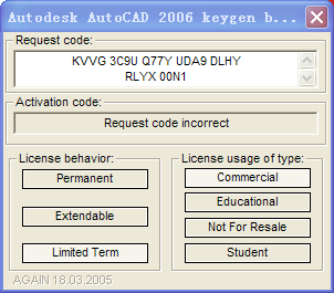 成功安装CAD2006后在最后一步注册的时候,输入申请号后,却提示:请求代码不正确Request code incorrect